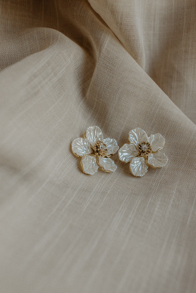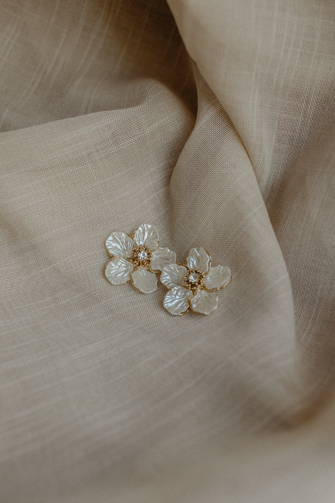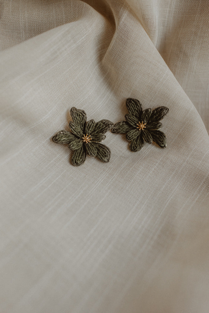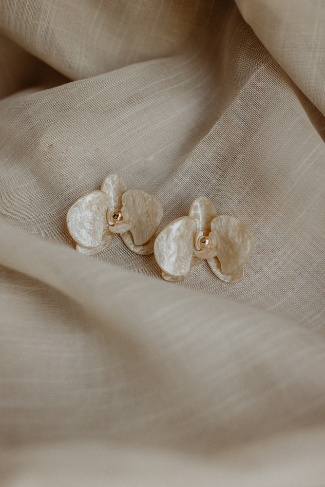 Oorbel bloem taupe