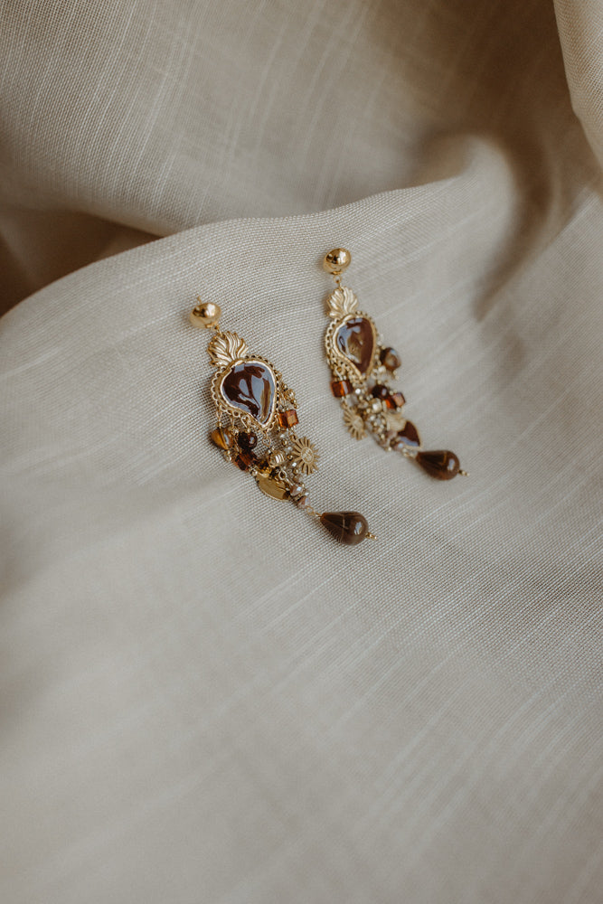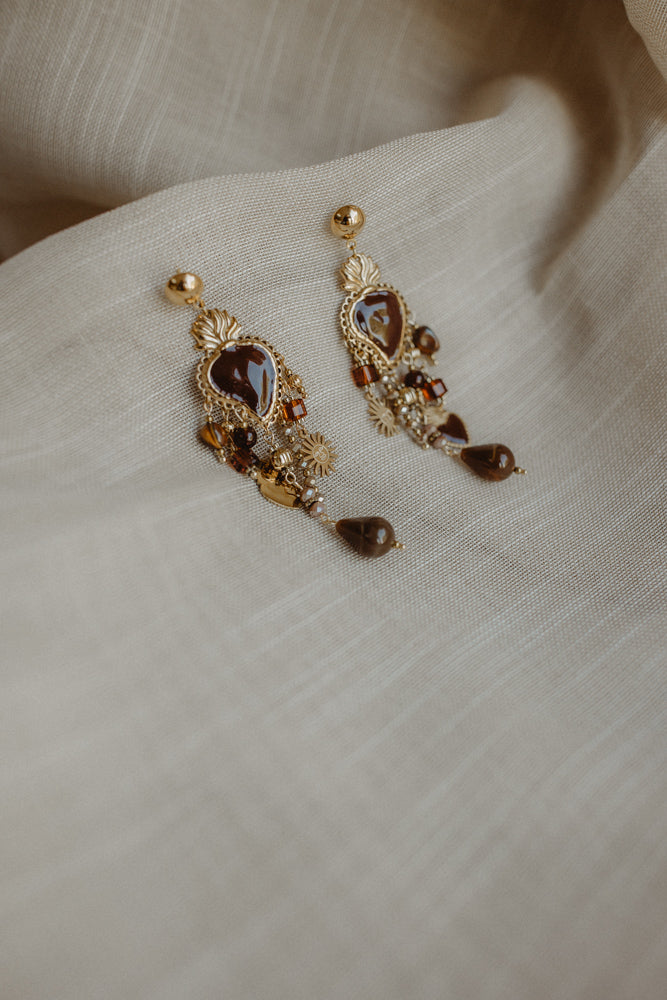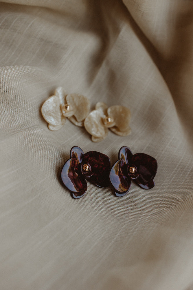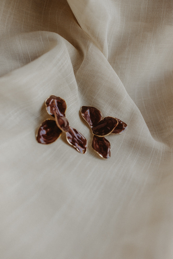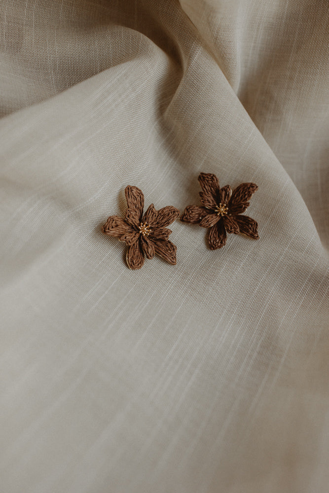 Oorbel bloem bruin